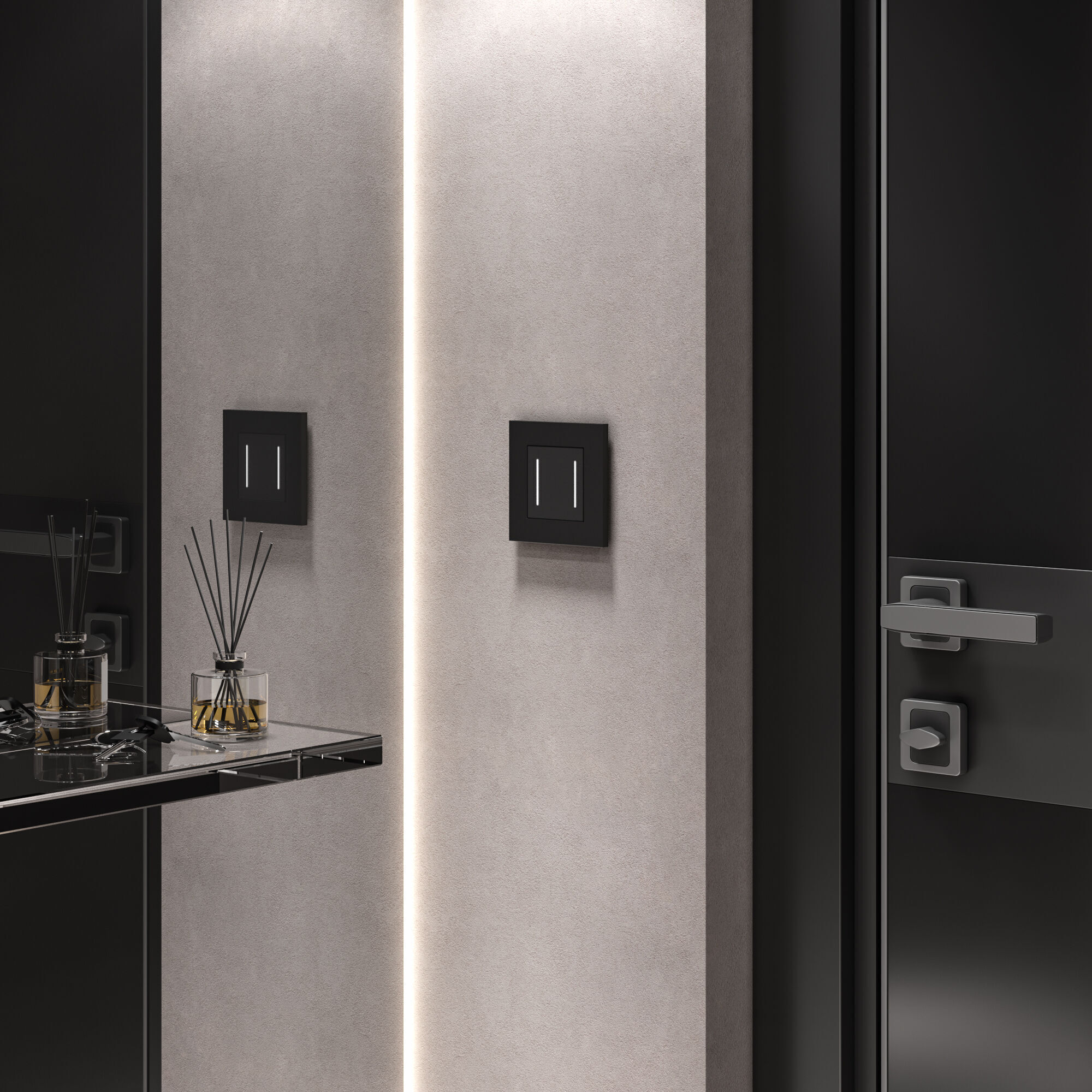 Увеличенная сенсорная поверхность обеспечивает стабильное срабатывание при легком касании в любом месте лицевой панели выключателя. Встроенная подсветка помогает обозначить выключатель в темноте. Механизмы выключателей совместимы со всеми рамками Werkel™.