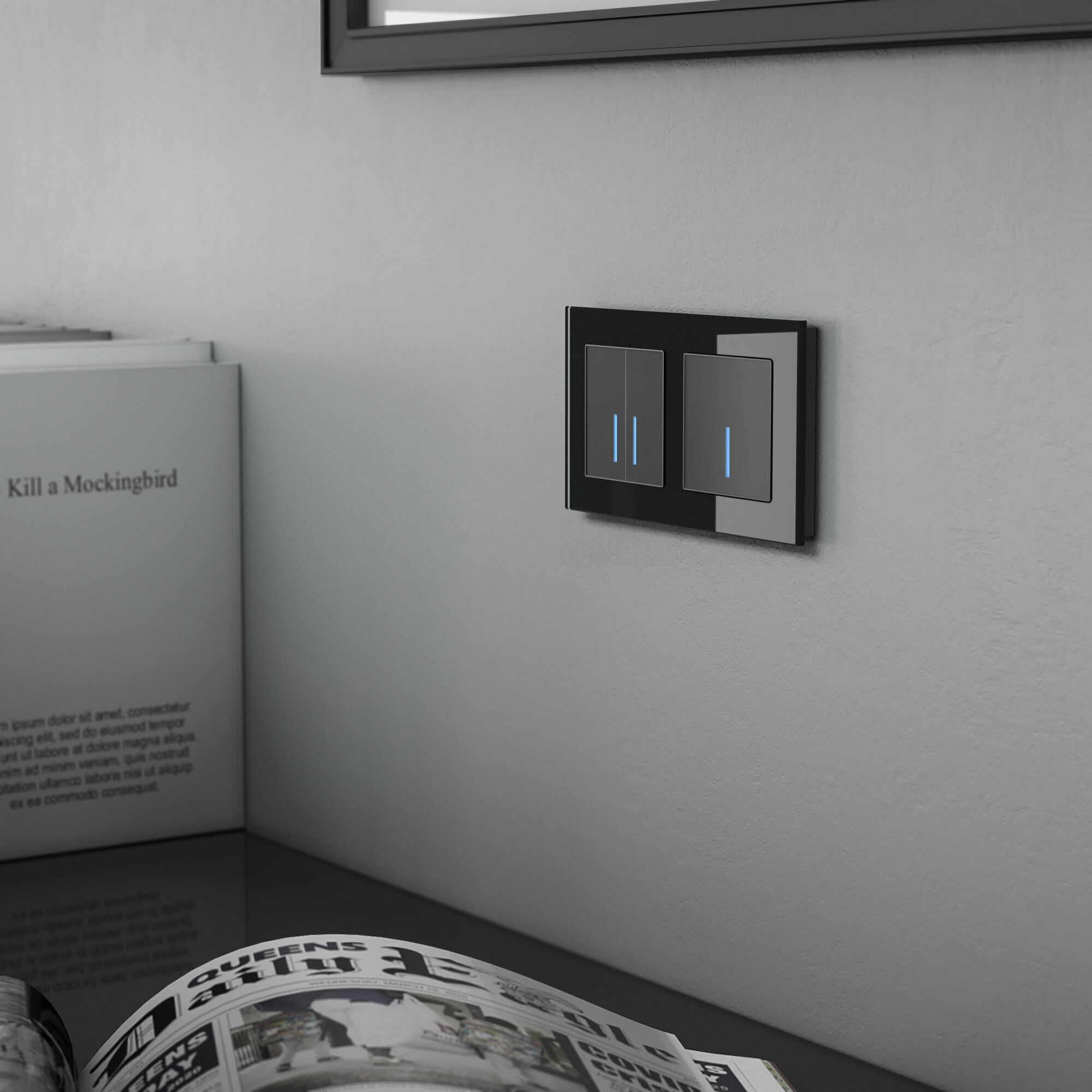 Сенсорный выключатель имеет стеклянную поверхность Soft-touch, которая обладает приятным тактильным эффектом. За счет матового фактурного покрытия лицевая панель не бликует и на ней не остается следов.